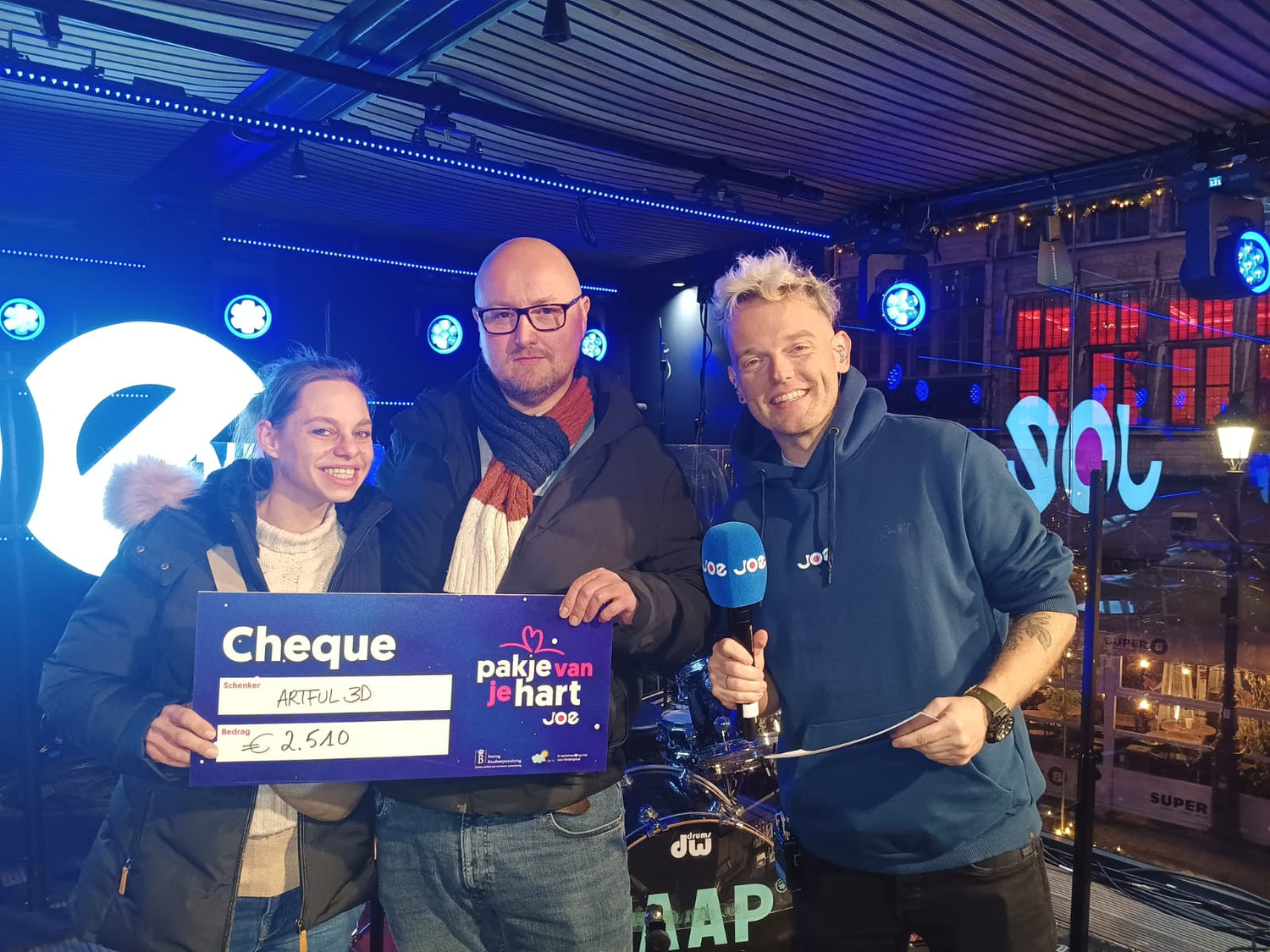 Op de slotshow van Pakje van Je hart, konden dan ook met enige fierheid live, als klein lokale onderneming, toch een hele mooie cheque van €2510 overhandigen