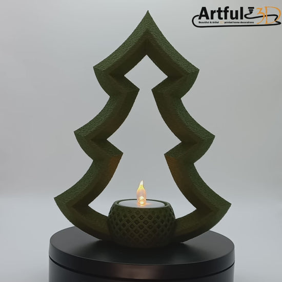 Mooie abstract versie van een kerstboom in de vorm van een theelicht houder.