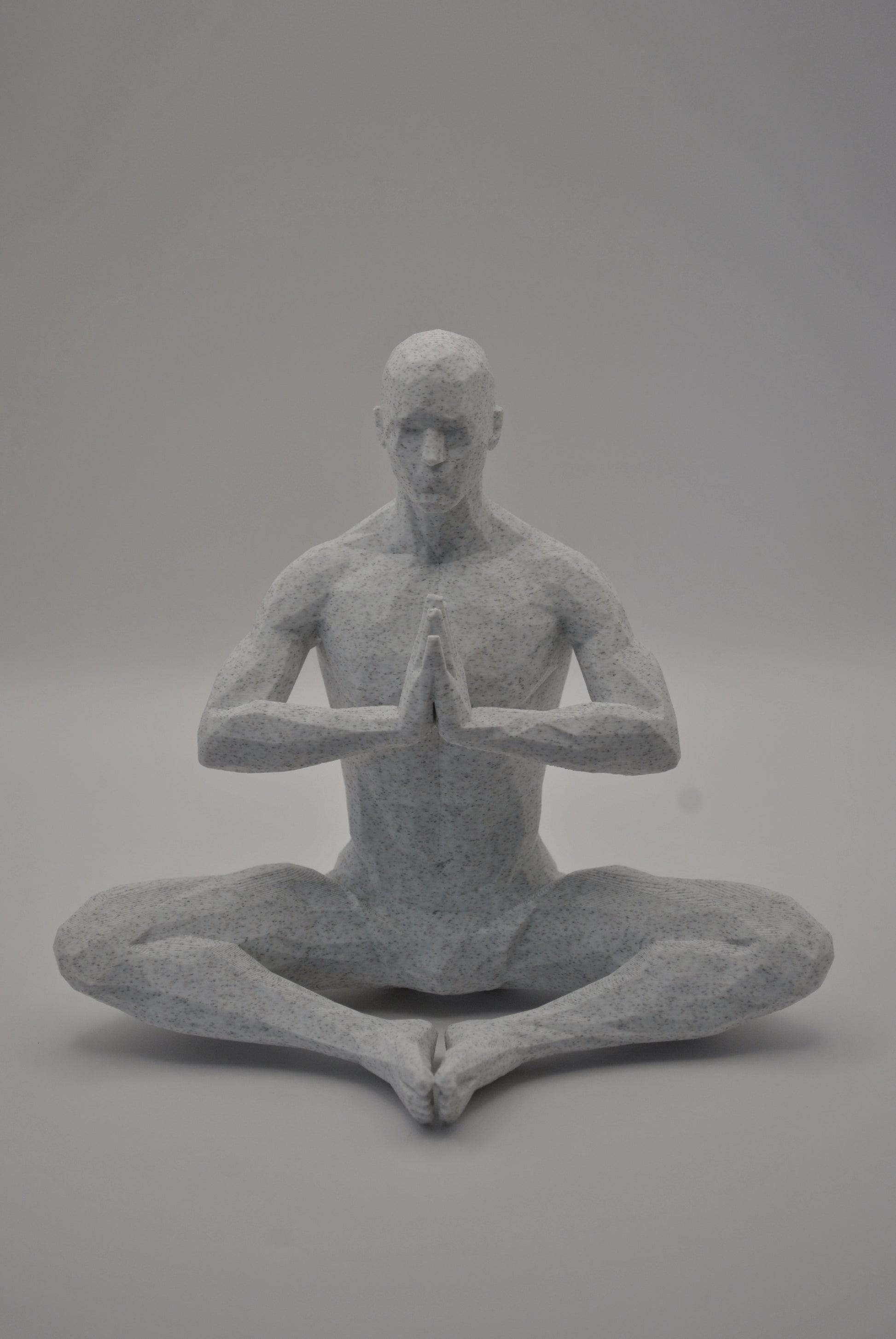 Breng rust en balans in je ruimte met dit moderne meditatieve beeldje. De abstracte, geometrische vormgeving symboliseert innerlijke kracht, focus en sereniteit. Met de handen in de namasté-houding en de benen gekruist in een klassieke lotuspositie, straalt dit beeldje een kalme energie uit – perfect voor een yogaruimte, meditatiehoek of als stijlvol decoratief accent in je interieur.