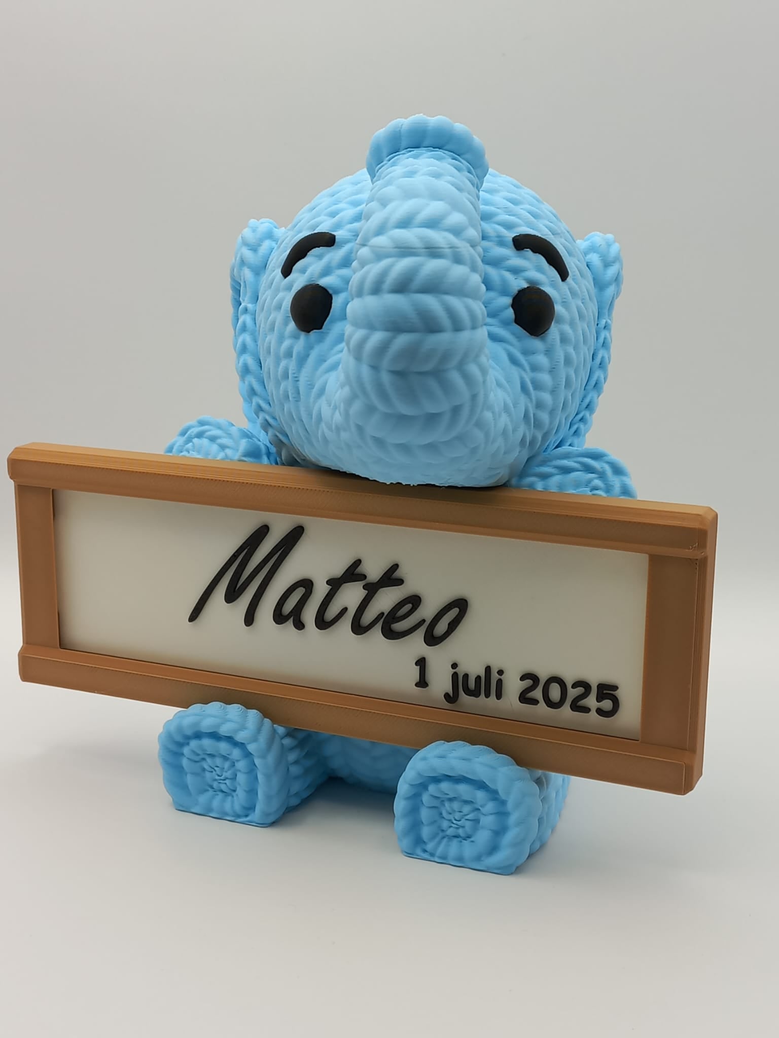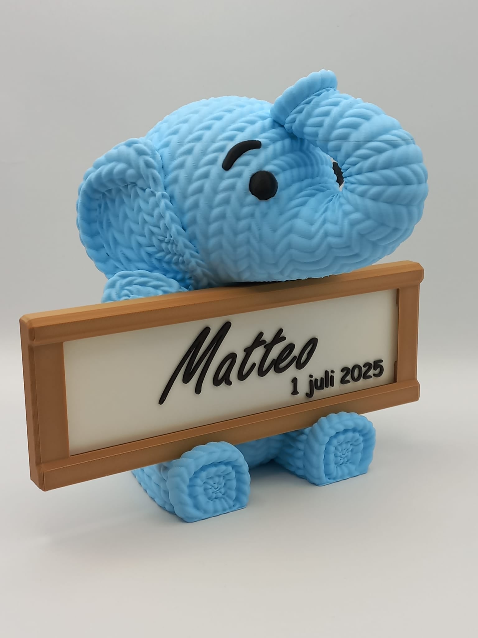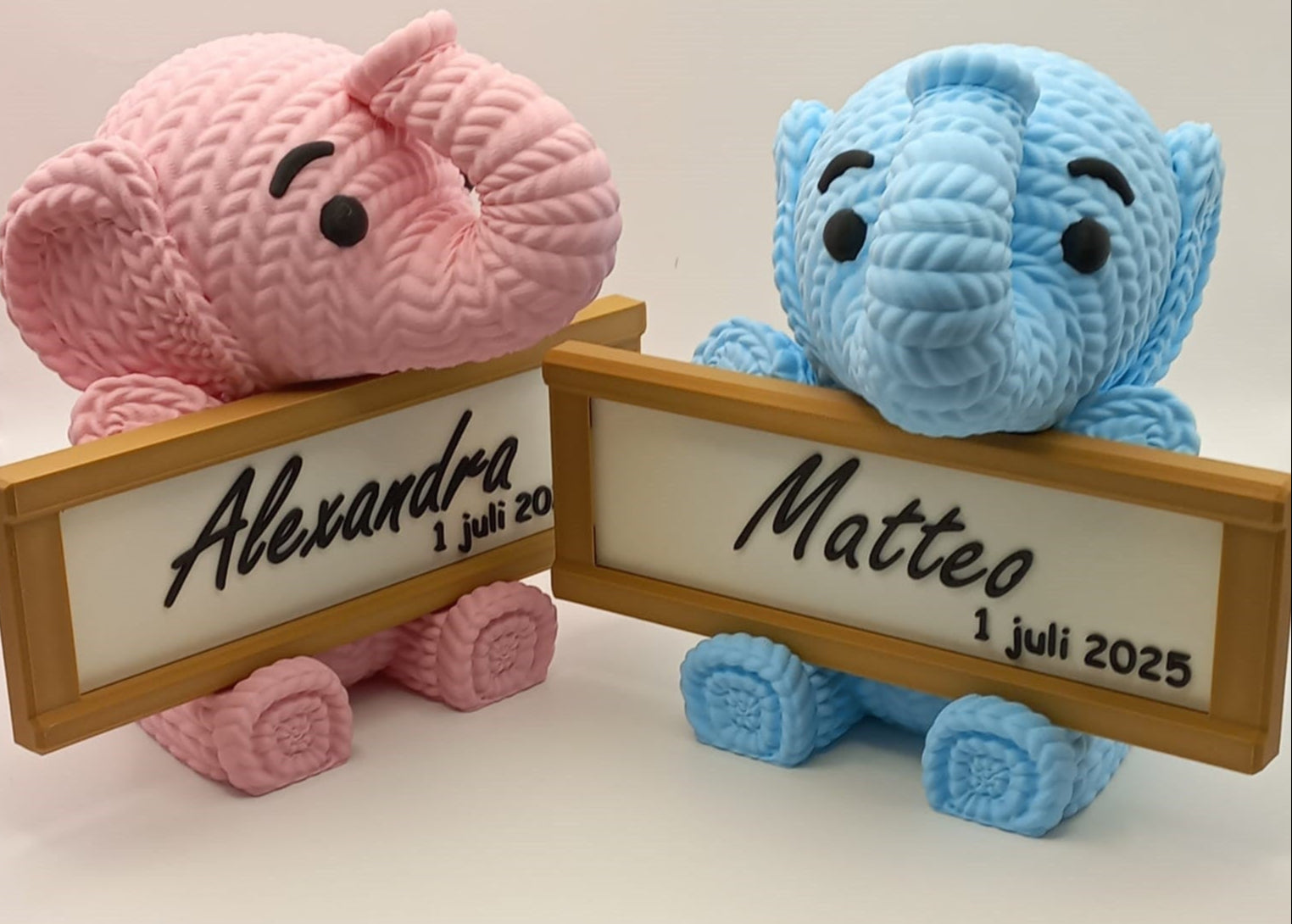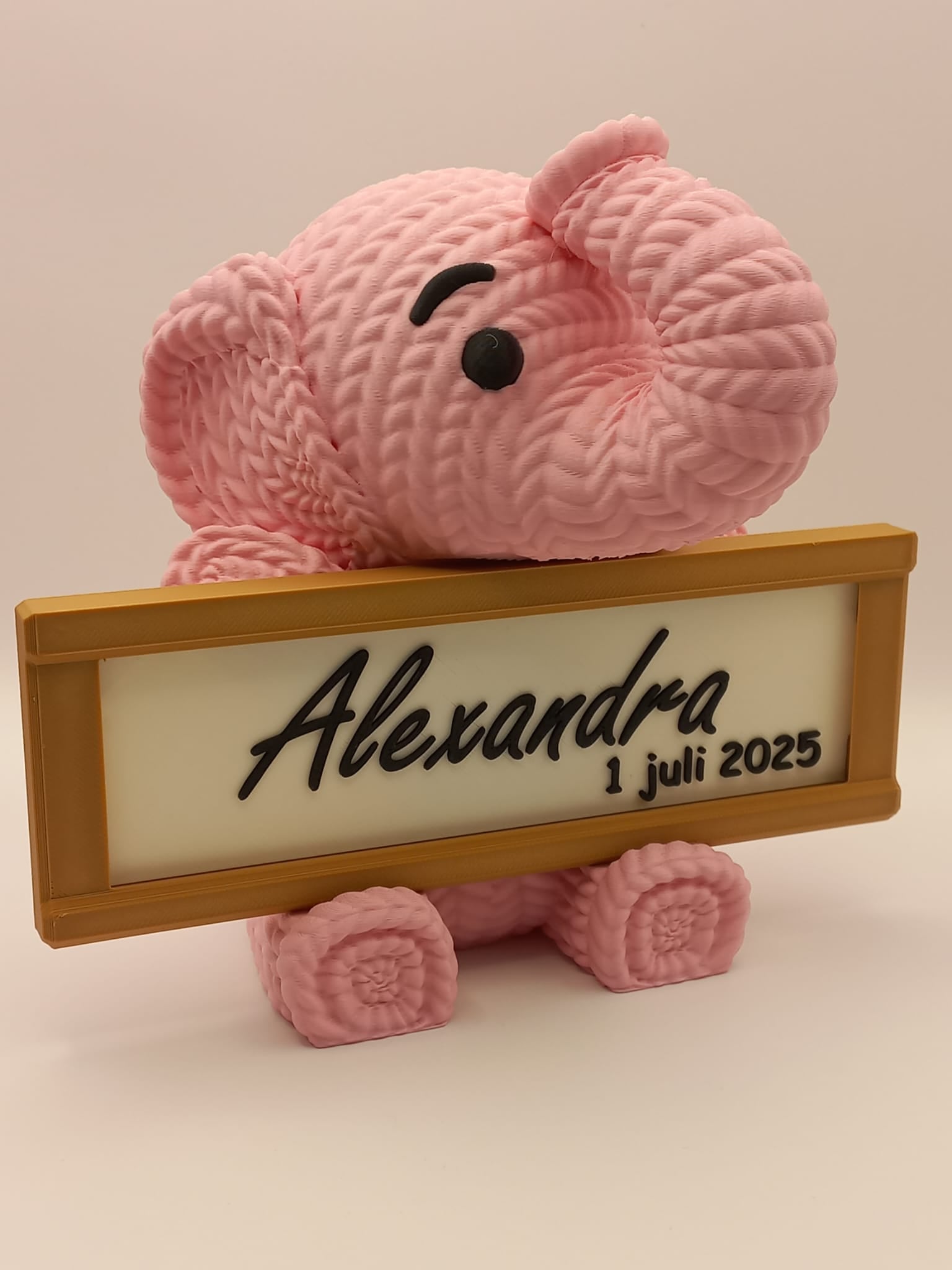 Leuke schattige knuffel geprint in 3D om de komst van jouw baby te vieren. In roze of licht blauw.