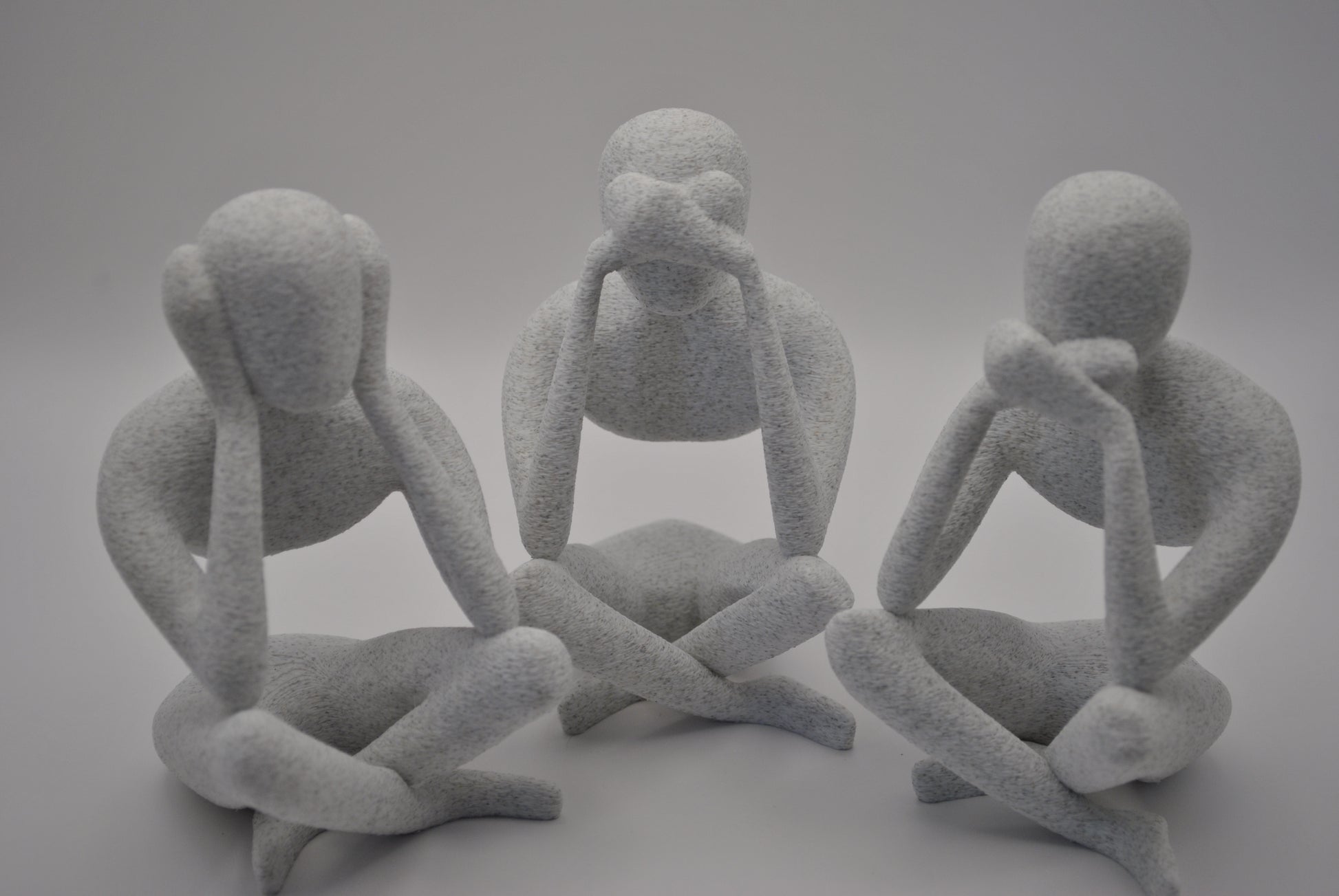 Een moderne remake van de 3 beruchte aapjes Mizaru, met zijn handen voor zijn ogen (ziet geen kwaad), Kikazaru, met zijn handen op zijn oren (hoort geen kwaad) en Iwazaru, met zijn handen voor zijn mond (spreekt geen kwaad) en deze keer niet in apen variant, maar in de zeer mooie NOBody style.