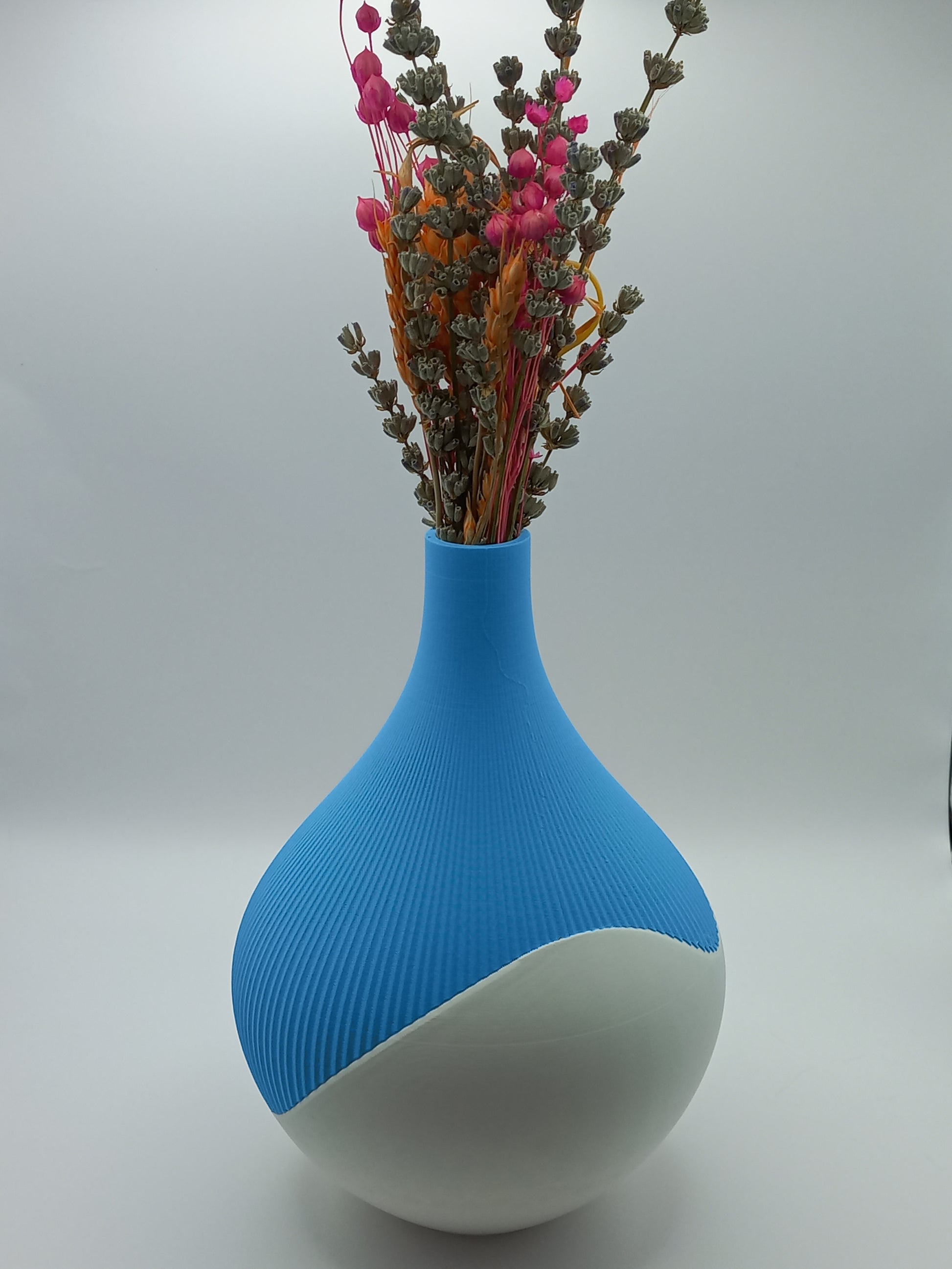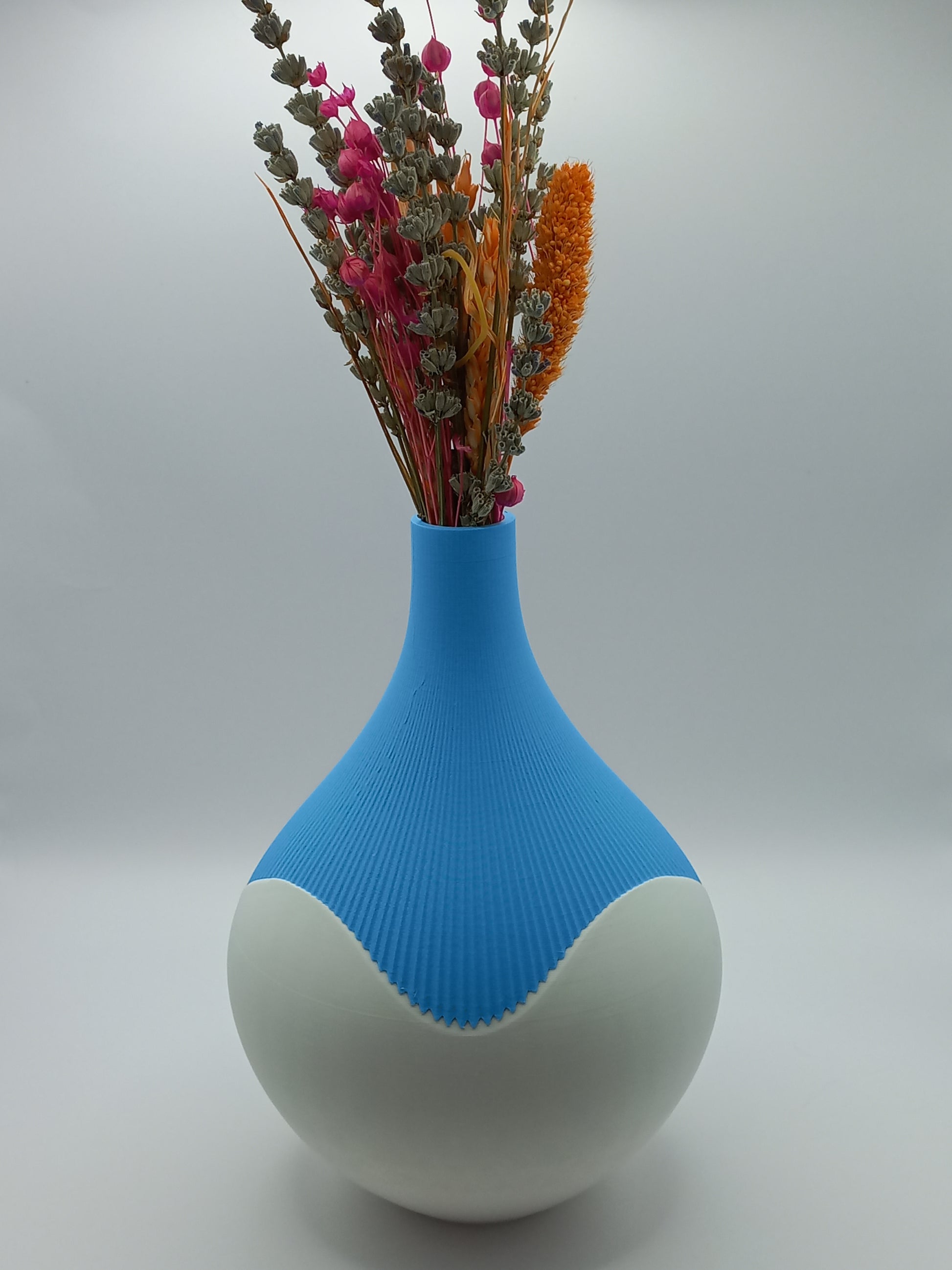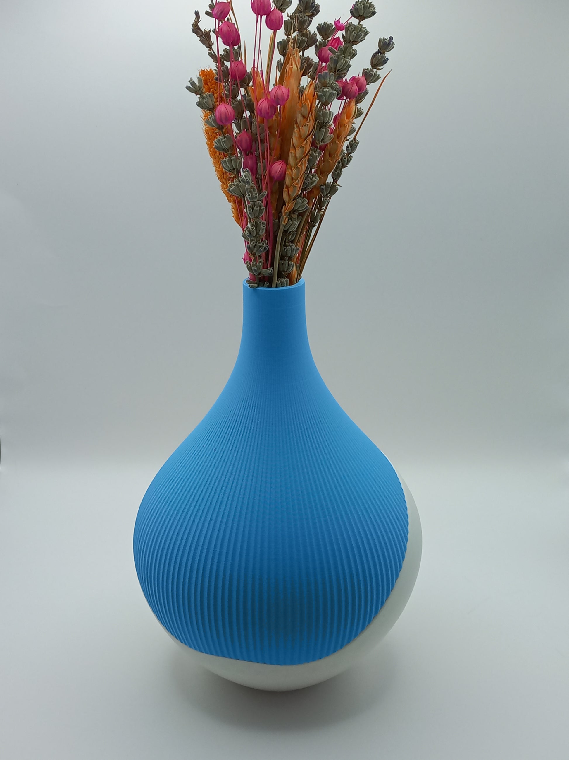 Deze stijlvolle vaas is geïnspireerd op Yang en Ying en wordt versterkt door het rijke kleurenspel in PLA-materiaal – een duurzaam bioplastic met een matte finish. Met een hoogte van 20 cm is deze vaas perfect als droogbloemhouder of als op zichzelf staand decoratief object.
