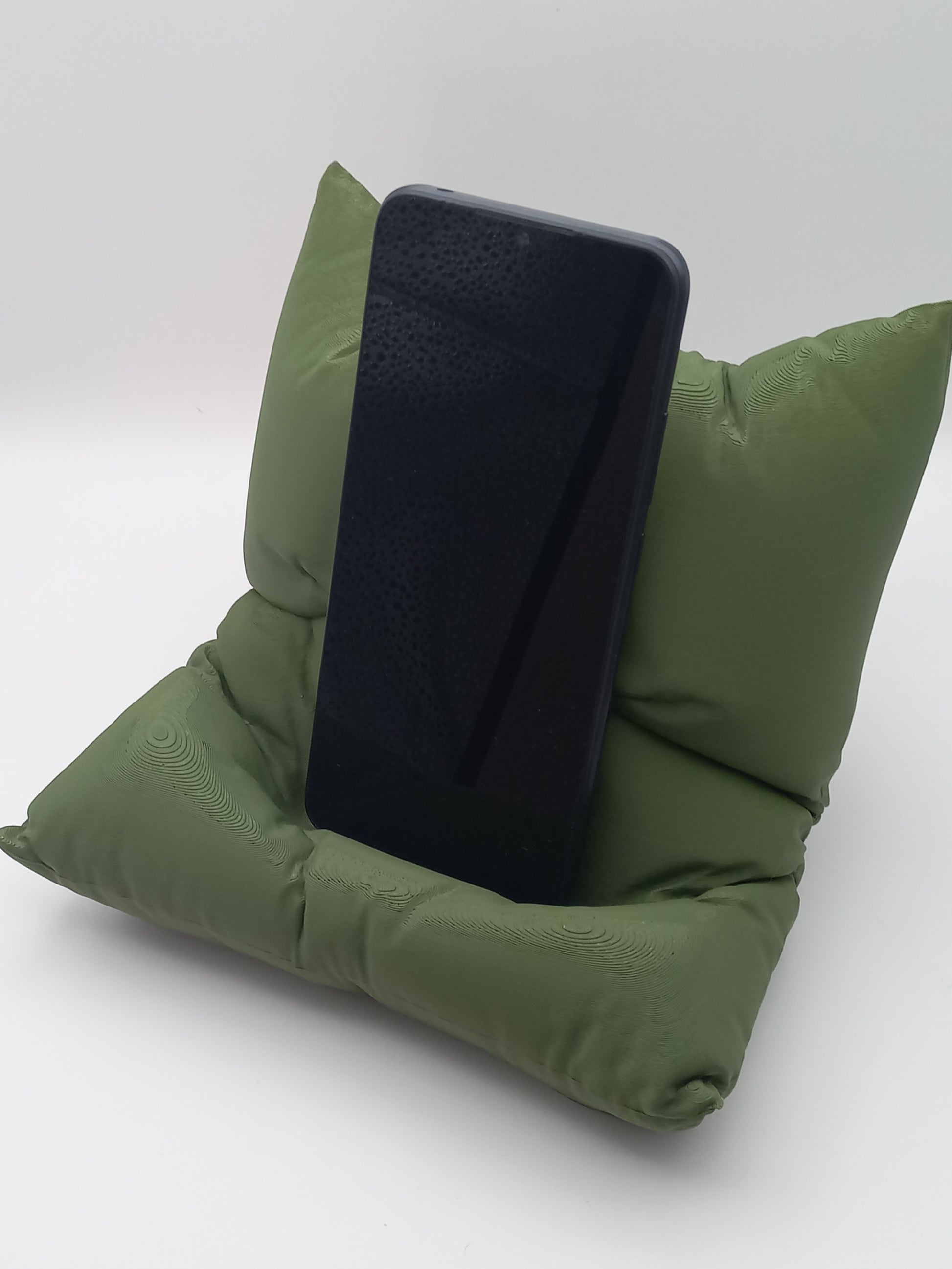 Geef je smartphone een zacht troontje met dit uniek 3D-geprint GSM-kussen! Met zijn speelse kussenlook en stevige vorm is dit de perfecte houder voor je telefoon op bureau, nachtkastje of in de keuken.