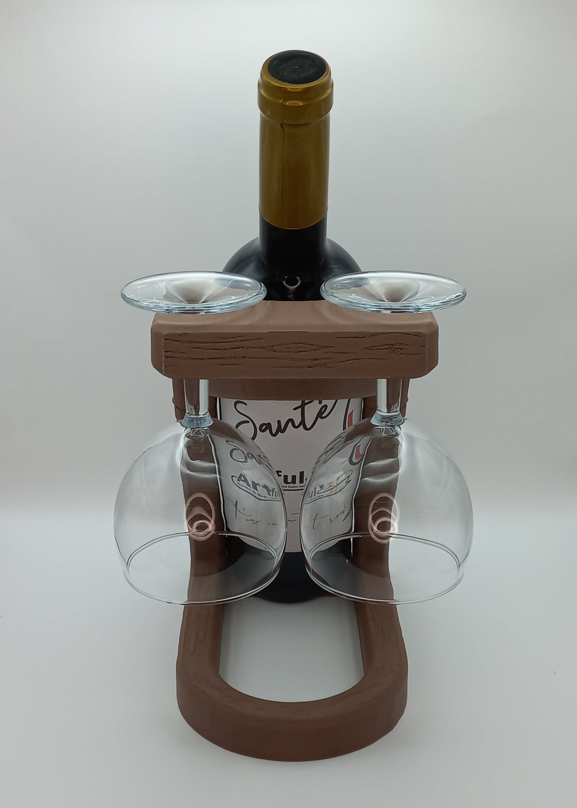 3D geprinte wijnhouder in houtmotief in milieuvriendelijk PLA